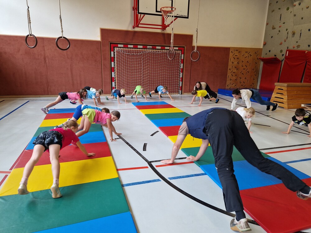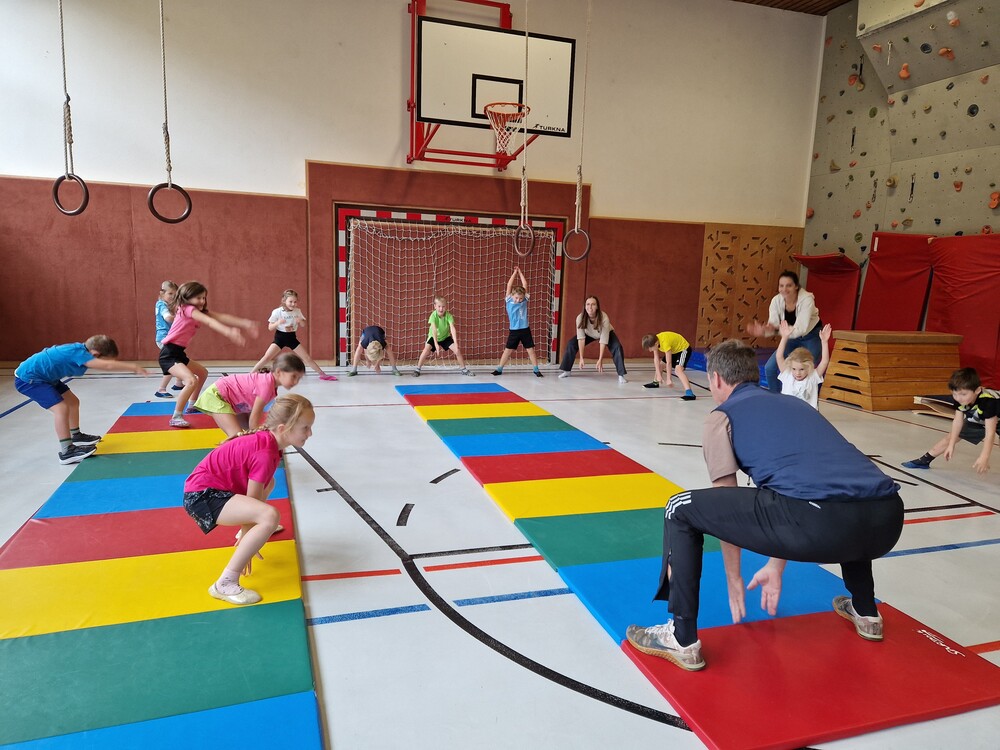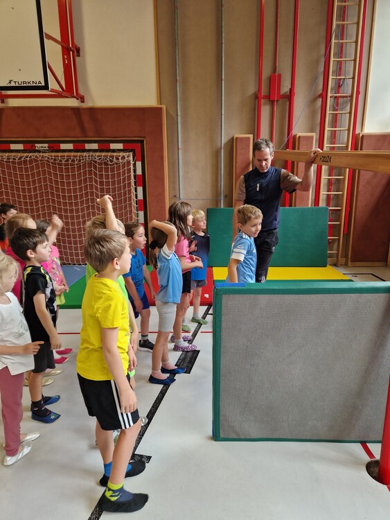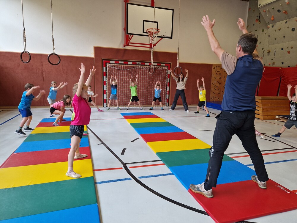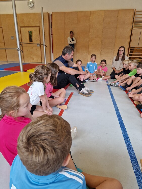 An gleich drei Schultagen gestaltete er mit den Kindern vielfältige und motivierende Turneinheiten. Auf dem Programm standen diesmal Geräteturnen, Ballspiele und Leichtathletik, bei denen alle mit Begeisterung dabei waren.Mit seinem fachkundigen Wissen und vielen praktischen Tipps zeigte Edi, wie unsere Schülerinnen und Schüler ihre motorischen Fähigkeiten spielerisch verbessern können. Vielen Dank für die tollen Stunden und die neue Bewegungslust, die du in unsere Turnhalle gebracht hast, lieber Edi!