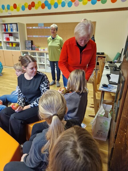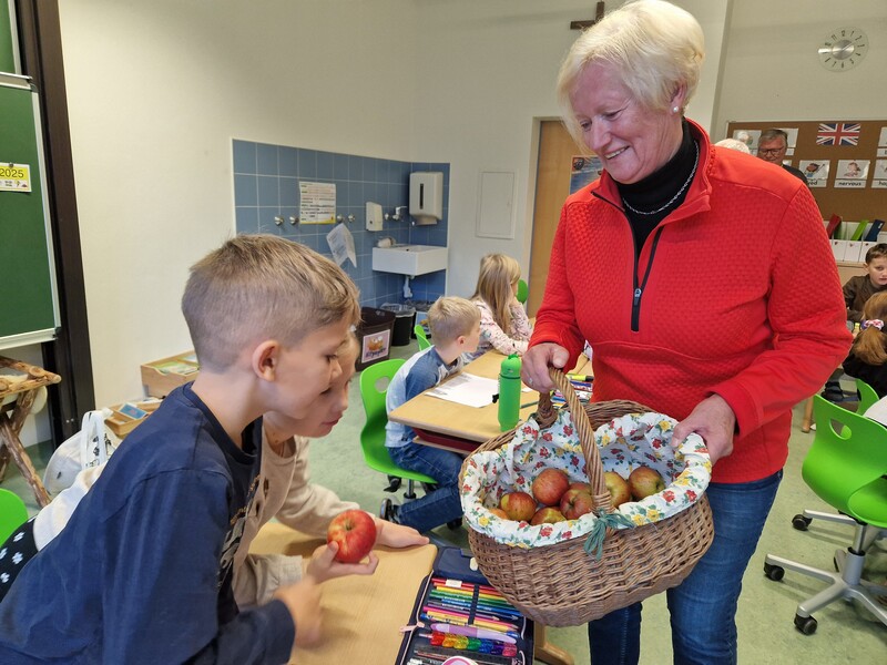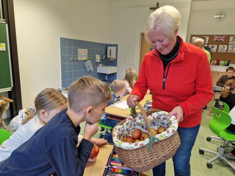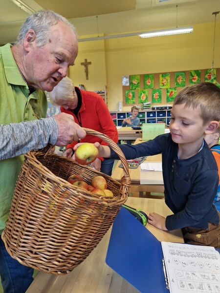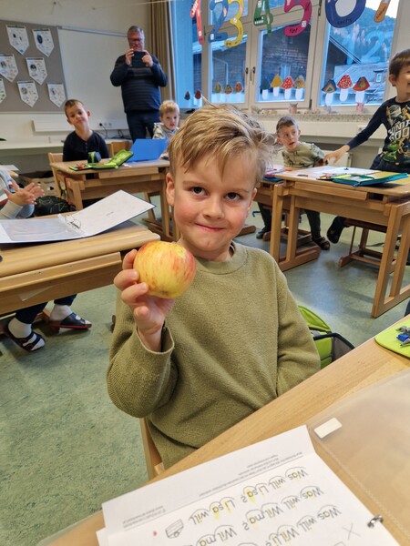 Unglaublich, welche Schätze direkt vor unserer Haustür wachsen. Besonders interessant war heuer der Austausch über die unzähligen Apfelsorten, die es weltweit – aber auch regional – gibt. Zum Abschluss erhielt jedes Kind einen Apfel als kleines Geschenk. Der regionale Apfel zeigte wieder einmal, wie einfach bewusste und gesunde Ernährung in der Jausenpause sein kann.